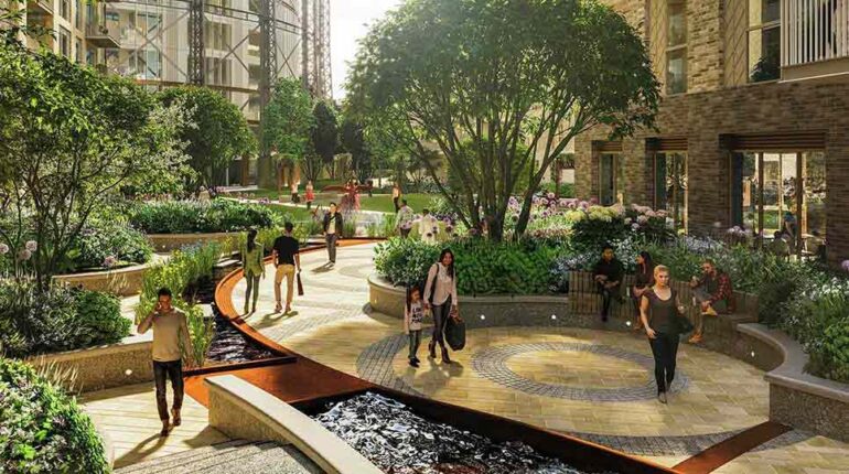 Berkeley Homes Central London is developing the 3.2 hectare site in south London with 1,332 new homes across seven residential buildings, along with a new Tesco and more than 15,000m2 of community, commercial, office and retail space.
