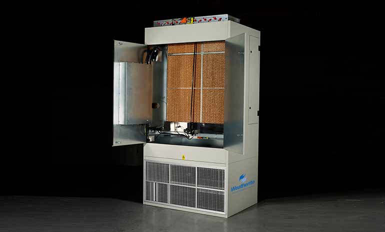 Condair’s evaporative humidifier is providing adiabatic cooling in Weatherite’s Adtec-D free-cooling unit. It boosts the cooling capacity of the system, allowing the Adtec-D to fully replace the need for mechanical cooling in some applications.