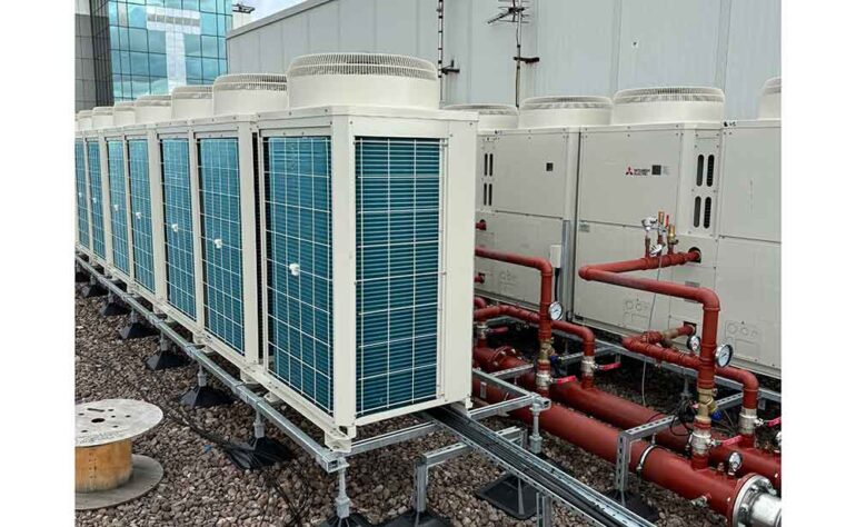 Working with Austin Broady Associates, FSW identified Mitsubishi Electric’s CAHV-P500YB-HPB 40kW commercial air heat pumps as the most suitable hardware for Building 8, a ten-storey structure with 116,000ft2 of office space.