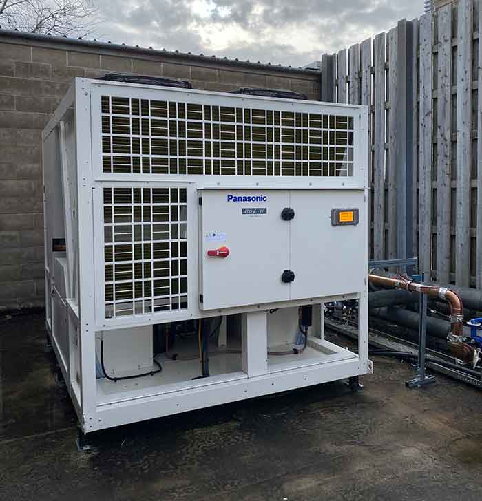 Finn Geotherm became the first company in Europe to install Panasonic’s large 210kW air-source heat pumps in 2021. The first installations, undertaken for the University of West London, demonstrated the potential for air-source heat pumps in large scale projects, with Finn Geotherm going on to install the 210kW air source systems in more than a dozen other public sector properties.