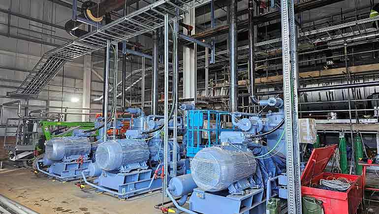 The GEA screw compressors are employed as the low stage booster compressors, coupled with GEA Grasso V-series reciprocating compressors to take advantage of the reciprocating compressors’ enhanced COP at part load operation.
