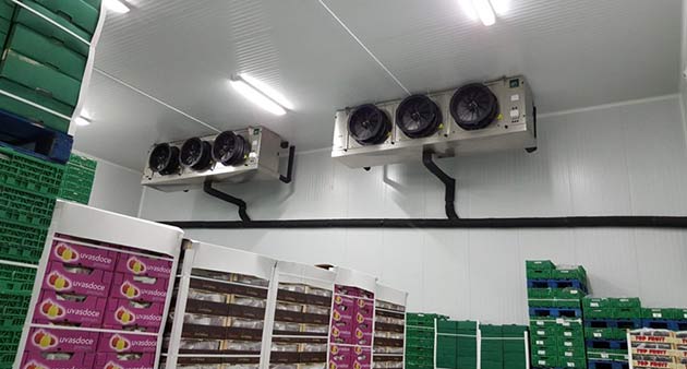 The plant uses high pressure cold air to cool the harvested grapes. The cold air passes through the pallets with the direction of the air flow changing every half an hour in order to ensure the maximum temperature uniformity. Twelve tons of grapes are processed per hour. They enter the facility at a temperature of about 26-28°C and come out at 1-3°C.