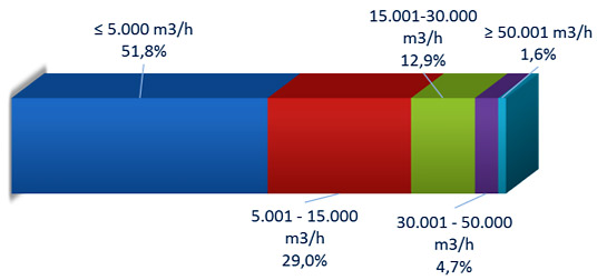 Units of under 5,000m3/hr continue to be the most popular, commanding 52% of the market against only 6.3% for units of over 30,000 m3/hr.