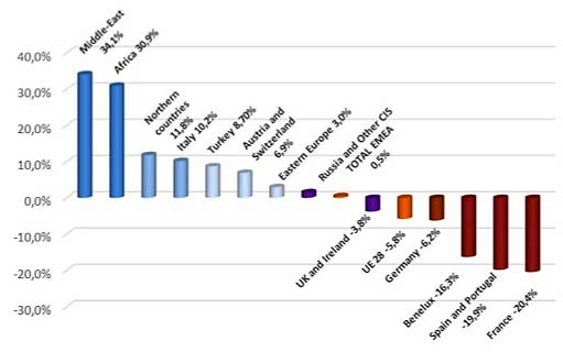 Outside of the EU, Turkey stands out with its continued steady growth and a market share close to 10% this year against 7% the previous year. Russia is behind it with 7% of sales in the EMEA region. Sales in the Middle East in 2013 were approximately 260,000 units in 2013.