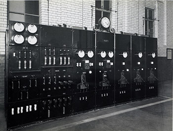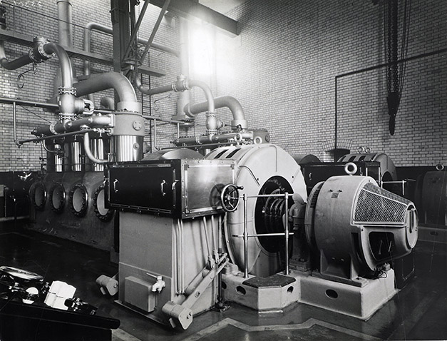 These were driven by a vertical compound Cole, Marchant & Morley steam engine having cylinders 27in and 50ins in diameter x 36in stroke. Steam was supplied from the existing battery of six Lancashire boilers which had been supplemented with superheaters to increase efficiency.