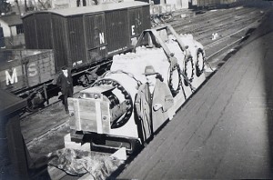 Presumably just arrived at Grimsby (but not clear from caption) but next photo in book is of the compressor on Parker Street before being hauled into the engine room. However date of second photo is 11.10.31
