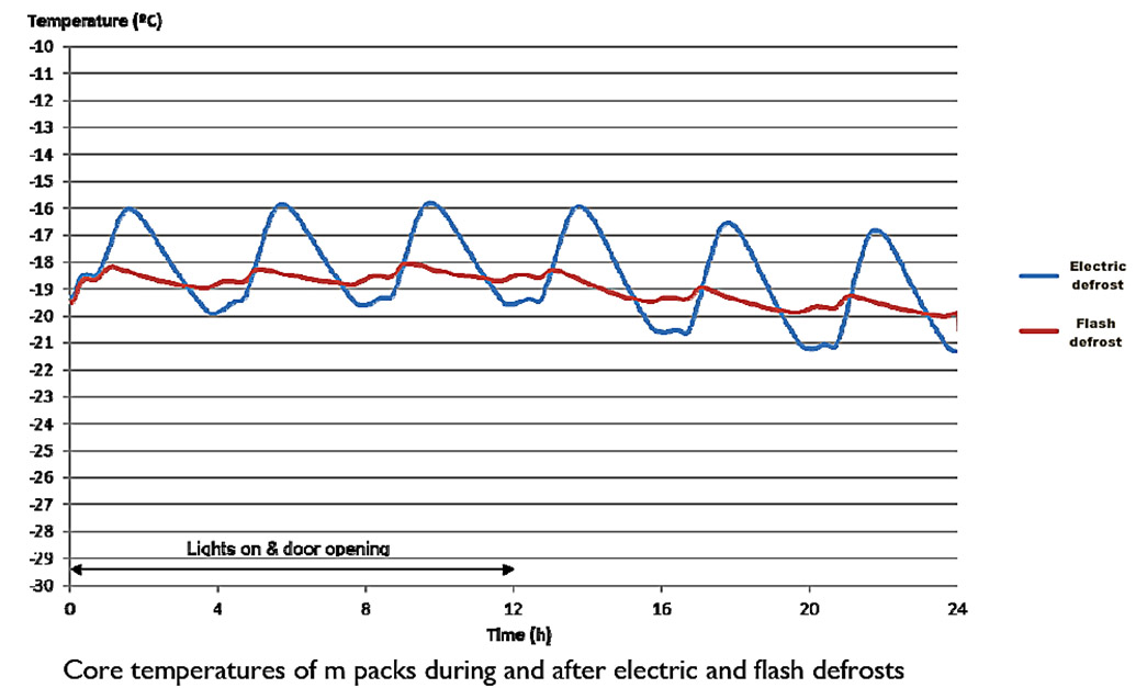 “This means that the temperature of stored product is maintained within much narrower limits, rather than fluctuating wildly as in the case of a traditional defrost.”