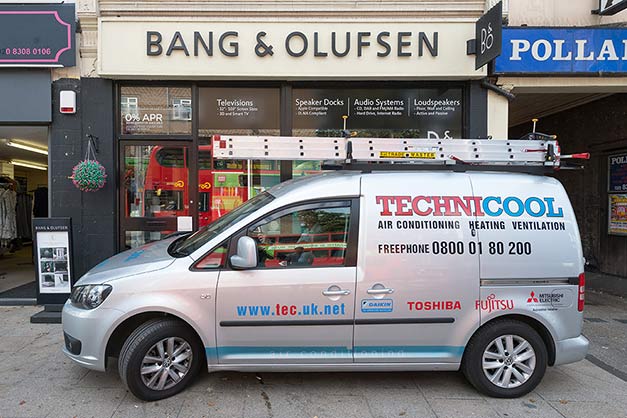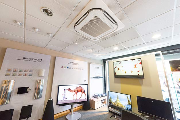 “The old system had become quite noisy, so we had to switch it off every time we did an audio demonstration. That was not good for the customer experience, as without air conditioning, the temperature inside the shop could reach an unbearable 40°C in high summer,” explained B&O director Paul Blake.