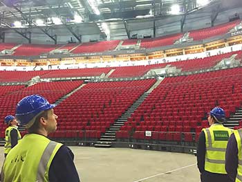 “It highlighted the challenges encountered by the M&E design team for such an unusual venue, and included a CPD session on the installation and a guided tour around the arena looking at plant rooms, electrical systems, Air Handling Units and associated equipment.”