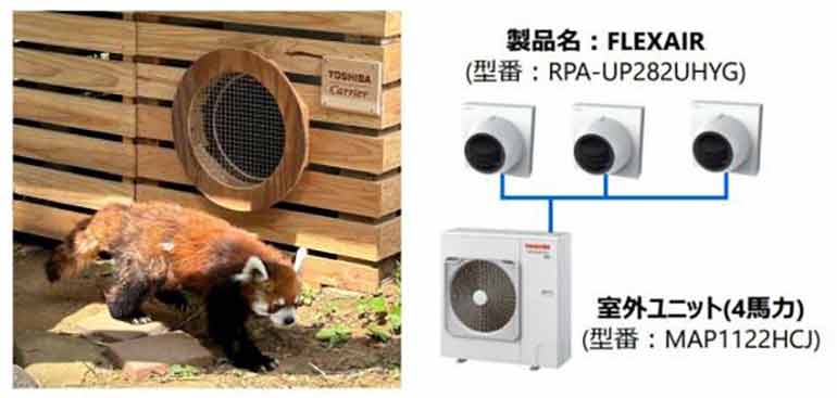 Toshiba Carrier proposed a system using Flexair that can set the temperature and air volume according to the physical condition of the red pandas in the outdoor enclosure. The company has previously tested the Flexair system in the public viewing areas at the zoo.