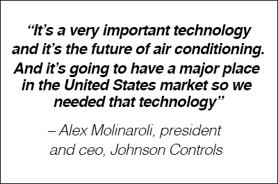 Access to Hitachi’s VRF product range was thought to be the main driving force behind Johnson Control’s purchase of a 60% stake in Hitachi’s global air conditioning business at the end of 2013. At the time, Johnson’s chairman, president and ceo Alex Molinaroli, referring to VRF, remarked: “It’s a very important technology and it’s the future of air conditioning. And it’s going to have a major place in the United States market so we needed that technology. For us to build that organically, it was too risky and it would have taken too much time to continue within that marketplace. The technology first was really important.”