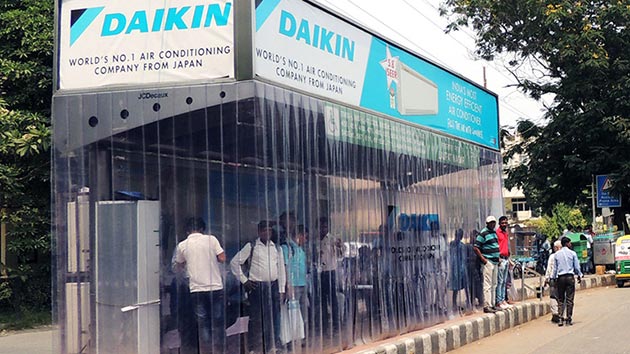 Like buses, you wait for ages, then three come along together. Not to be outdone by LG and Haier, Daikin India has also placed a foot on the platform by kitting out a bus stop at Lajpat Nagar, New Delhi.