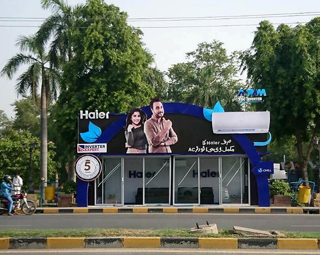 Haier is offering Haier Chill Stop bus shelters in Lahore. The Haier Chill Stop is a branded, completely glass enclosed bus stop designed to give instant relief to bus commuters from the searing heat. The bus stop has been furnished with comfortable seating, and a Haier air conditioner to create a cool, comfortable and pristine environment for commuters.