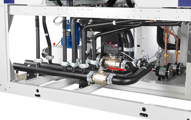 The heat recovery system enables chillers to produce domestic hot water up to 80ºC, while continuing to provide cooling, making it useful for applications such as hotels, hospitals and industrial processes requiring hot water.