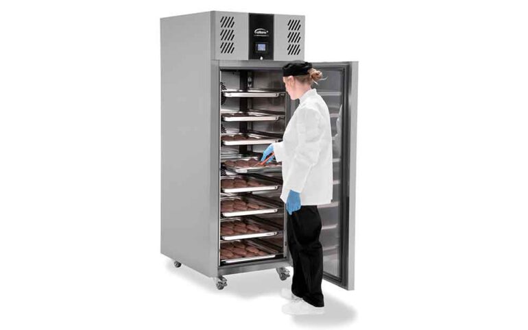 Four fans within the cabinet ensure efficient airflow and consistent temperature from top to bottom. In the initial phase, the air temperature may be as high as 9°C, to kick start the process, but critically the food’s surface temperature never creeps into the bacteria danger zone above 5°C. At the end of the process, the cabinet automatically switches to chilled storage mode.