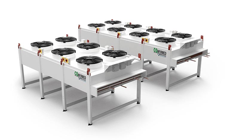 The coolers also offer various options for customisation, such as copper fins, coated fins, stainless steel casing, anti-dampers, AC fans, shielded wiring, service switch, speed controller, Axitop and wiring into centralised box with magnetothermic switches.
