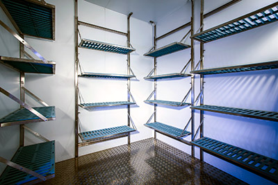 ISD Stowaway shelving is designed to complement the composite insulated panel systems commonly used in cold store and warehouse construction. Individual shelving bays measure 1.070m wide with height adjustable from 2.5 to 3m.