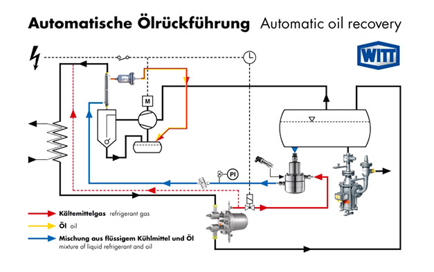 Don Belcher, managing director of Titan Engineering, commented: “Even with efficient oil separators there is always a small amount of oil carried over into systems, which will accumulate over time and needs to be recovered. The Witt oil recovery system incorporating the BDP2 uses existing hot gas to automatically return accumulated oil in a cost effective and energy efficient way back to the compressor via a heat exchanger and oil filter to ensure evaporation of remaining liquid refrigerant.”