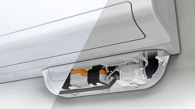 The second product is the Omega Pack, an under the unit pump housing containing an Si-20, a detection unit, all accessories required, and a shell in two parts. According to Sauermann, the soft design of this shell and its pure white colour make it the perfect fit for the most recent ac units. Reversible, the shell can be installed on either side under the unit, right or left.