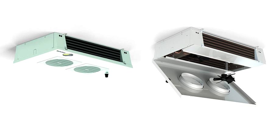 The result of joint development work between the three teams, the Kelvion KDC dual discharge air cooler is designed for uses in commercial HVACR, cold rooms, and freezer rooms.