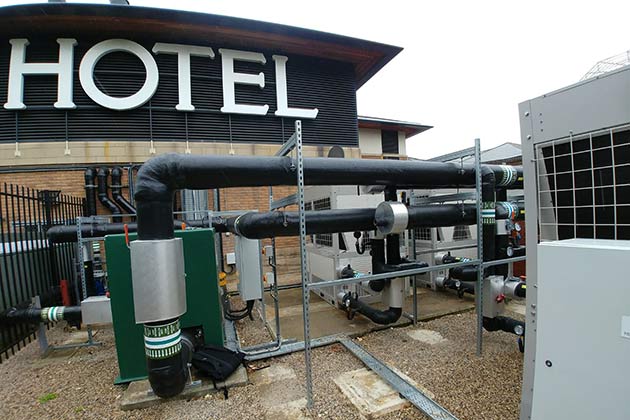 The chillers, which have been available in the Far East for around 12 months, were tested first in an installation in the Netherlands last year. Four 123kW units have since been installed in the UK at the Thorpe Spa Hotel in Leeds to replace an existing Blue Box chiller. These units, which have been operating successfully for a number of months, are linked in to the hotels existing BMS control system.