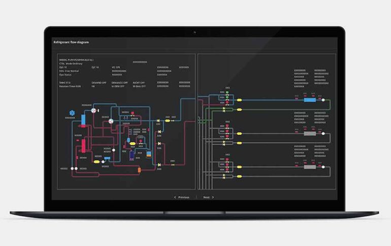 For service and maintenance professionals, the platform can deliver refrigerant flow diagrams and graphical representations of equipment performance, system operational data, all live online.
