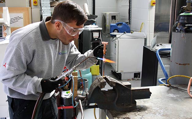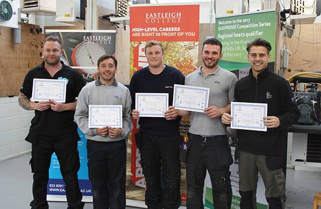 The Eastleigh heat saw Level 2 apprentices, Jack Culhane, Bayley Mummery, Jake Gorman and David Couch, and Level 3 apprentice Stephen Taylor, tackling tasks such as pipework and brazing tests, as well as testing refrigerant systems for pressure and leaks to industry safety standards.
