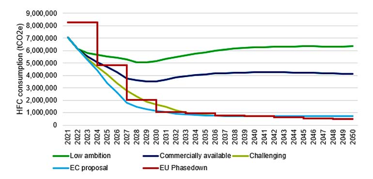 The UK government has previously indicated that it would follow the European regulation or even extend it. However, the DEFRA report admits that initial European phasedown modelling may be unfeasible for the Great Britain market.