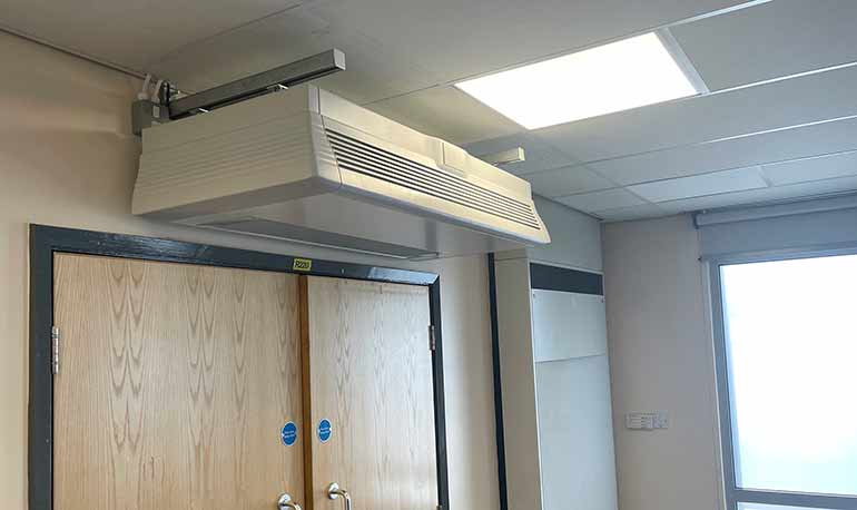 Following a heating audit at the school new high-level Ciat fan coils were mounted within ceilings and on surfaces, allowing the equipment to be installed while the school continued to operate with the existing heating system still using the gas boilers.