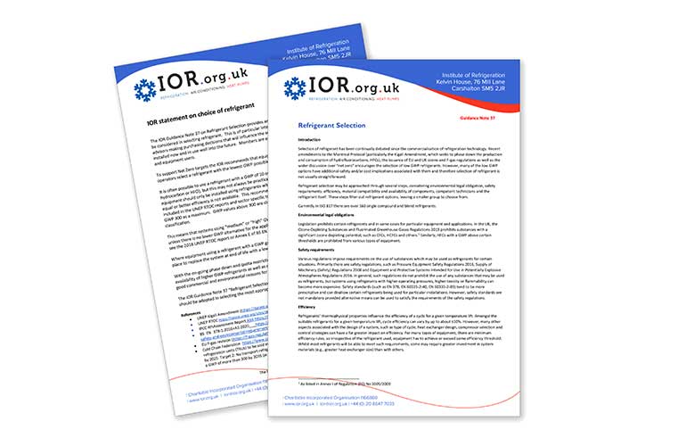 IoR Guidance Note 37 Refrigerant Selection is targeted at equipment owners, operators and advisors making purchasing decisions that will influence the selection of refrigerant and equipment.