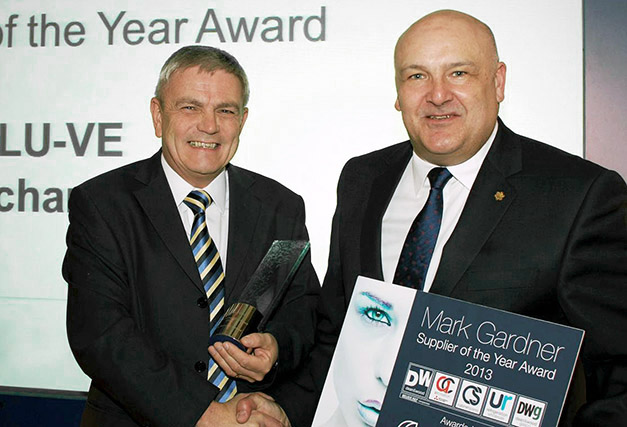 Pictured (above) receiving the award from Dean & Wood md John Billson is Steve Taliadoros (right) the Lu-Ve UK general manager.