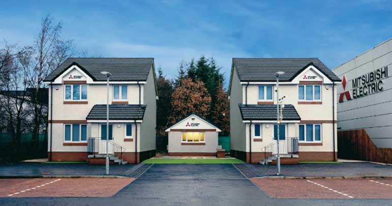 The Mitsubishi Electric Research & Development (R&D) Centre Europe (MERCE) moved to the 90,000m2 Livingston site In 2013, building and opening two test houses next to the factory, along with a bespoke experimental control room. Each house is modified by the installation of a vast array of sensors, both for measuring the detailed environmental conditions and for in depth monitoring of the operation of the heating systems.