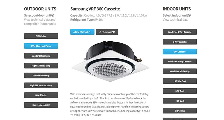The browser-based app is said to make selecting outdoor and compatible indoor units much easier for system designers and those wishing to specify Samsung VRF/DX and chilled water solutions.