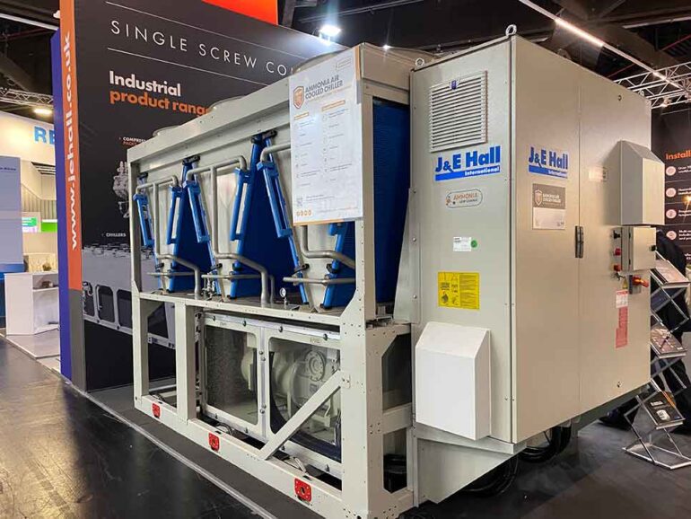 UK: J&E Hall has announced a new low-charge air-cooled ammonia chiller based on HallScrew single-screw semi-hermetic compressors.