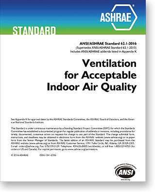The cost of Standard 62.1-2016, Ventilation for Acceptable Indoor Air Quality, is $84, ASHRAE members ($99, non-members). To order, visit www.ashrae.org/bookstore.