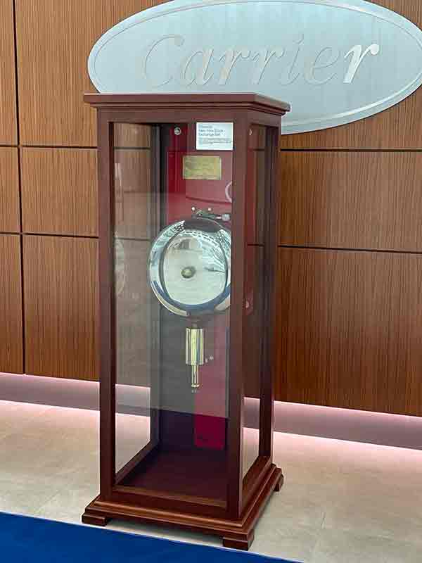 This was the first time that Carrier, a Fortune 500 company, had rung the NYSE bell, which, coincidentally, was crafted by a legacy Carrier company. When the NYSE moved to its current location in 1903, the original gong was replaced with a brass bell – electrically operated and large enough to resonate throughout the trading floor. The bell was based on an earlier version first patented by one of Carrier’s founders, Robert Edwards.