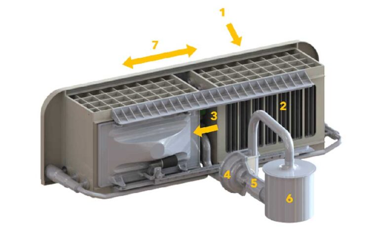 - Proprietary vacuum compressor pulls water vapor from the contactors in the closed chamber and slightly pressurises it