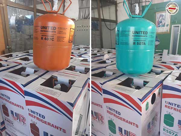 Several types of HFC refrigerant were said to have been contained in the shipment. Photographs indicate that these included R404A, R407C and R507A. All appear to be “United Refrigerants” branded cylinders.