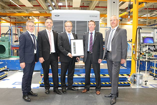Oy Combi Cool’s md Klaus Nyström and product manager Markus Antikainen travelled from Helsinki to Schkeuditz, to accept the EcoStar condensing unit from Bitzer’s LHVE series together with the corresponding certificate.