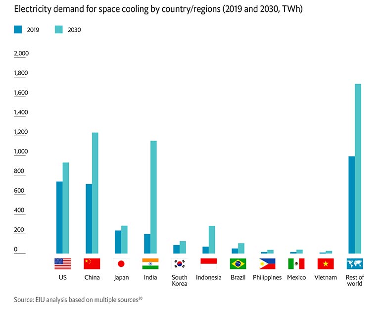 “Understanding the financial and environmental costs of different solutions to meeting growing cooling demand is critical to encouraging stakeholders to take action,” commented Diana Hindle Fisher, research analyst at the EIU. “Efficient cooling can expedite the transition to net zero at a lower cost, as well as providing benefits for all stakeholders, including governments, consumers, and the power sector itself, given the right incentives.”