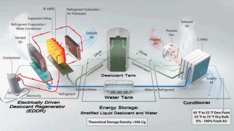 USA: The integration of energy storage, cooling, and humidity control into a single commercial system has been developed by the US National Renewable Energy Laboratory and Blue Frontier.