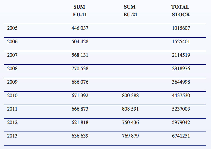 Air-source units remain dominant in the market and heat pumps for sanitary hot water production is the fastest growing segment. Larger heat pumps for commercial, industrial and district heating applications are also said to be increasingly popular. In all, and assuming a useful life of 20 years, the heat pump stock at the end of 2013 is put at 6.74 million units.