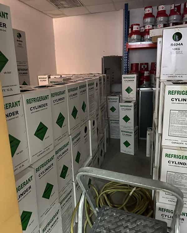 Photos suggest that some of the seized refrigerant was in disposable cylinders, while other images suggest a packaging operation of some sort.