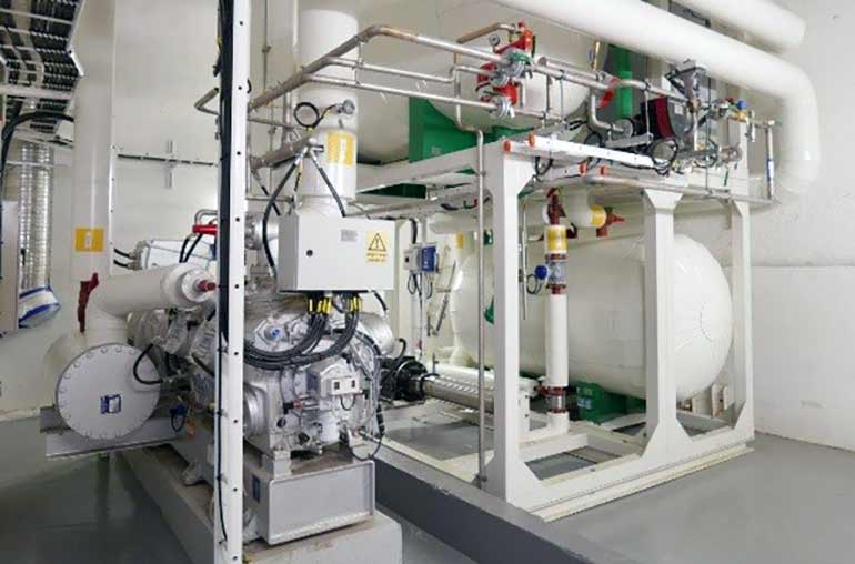Hybrid Energy’s heat pumps are built with standard ammonia compressors and a design pressure of 25bar. A traditional heat pump using pure ammonia, can heat water to 50°C at this pressure. A Hybrid Energy heat pump uses an absorption/compression process to heat water to 120°C using the exact same equipment. The company says it can cover a whole new range of temperatures than traditional heat pumps, meeting the demands of a wide range of industrial processes.