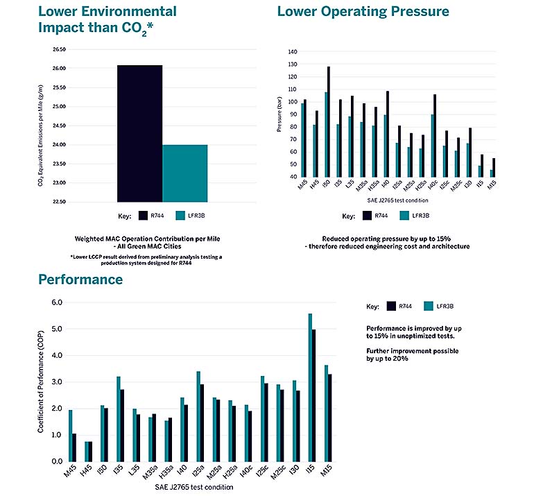 However, the same literature suggests its primary market is seen as the MAC sector. The literature compares LFR3 with CO2 under MAC tests to the Society of Automotive Engineers’ J2765 standard.