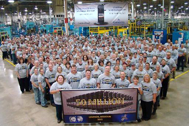 USA: Emerson Climate Technologies’ plant in Lebanon, Missouri, celebrated the production of its 50 millionth Copeland Scroll compressor last month.