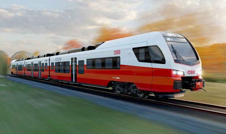 The battery trains will be operated by the ÖBB and will replace parts of the Austrian Federal Railway’s existing diesel train fleet. The FLIRT Akku trains with a seating capacity of 160 passengers each are intended foremost for use on non-electrified or only partially electrified lines along the Kamptalbahn in Lower Austria.