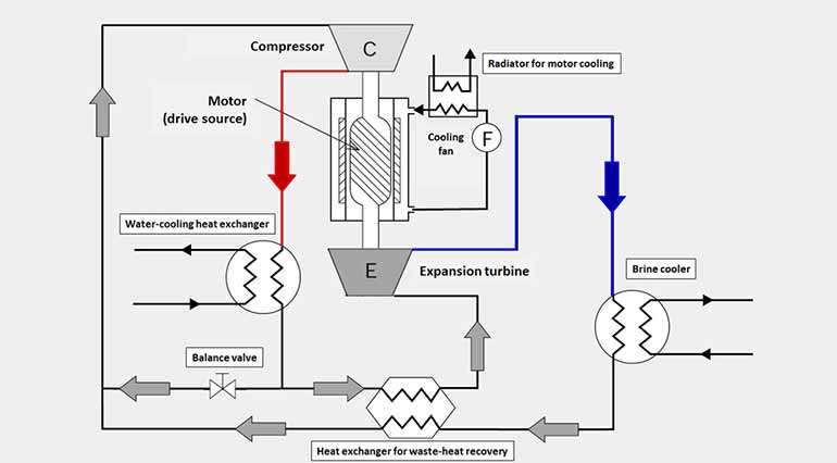 The compact, inverter-controlled unit relies on MHI Group’s accumulated high technologies in gas turbines, capturing the energy generated during air expansion cooling and using it as drive power.
