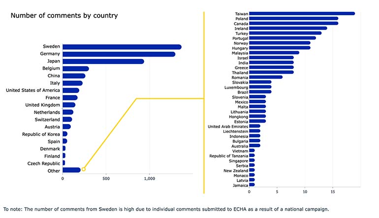 The comments received by the Helsinki-based European Chemicals Agency (ECHA) during the six-month consultation period, which ended yesterday, will now be checked by ECHA’s scientific committees for risk assessment and socio-economic analysis. The ECHA says that only those providing relevant evidence-based information will be considered in the opinion making process.