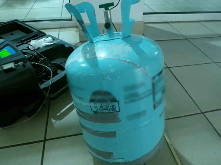 In another truck inspected at the border in Hrebenne, officers found a cylinder containing around 14kg of R134A in the toolbox. The driver of the truck attempting to illegally import the gas into Poland did not have the correct documentation and had not reported it to customs.